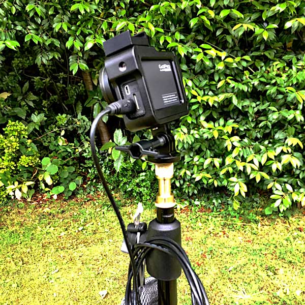 The GoPro was mounted on top of a 3m Manfrotto lighting stand using a ball joint connection, with the USB plugged into the portable power supply that hung from one of the stands locking screws in a small draw string bag. With the stand at its full extension the GoPro was hardly visible and was certainly unobtrusive in it’s operation.